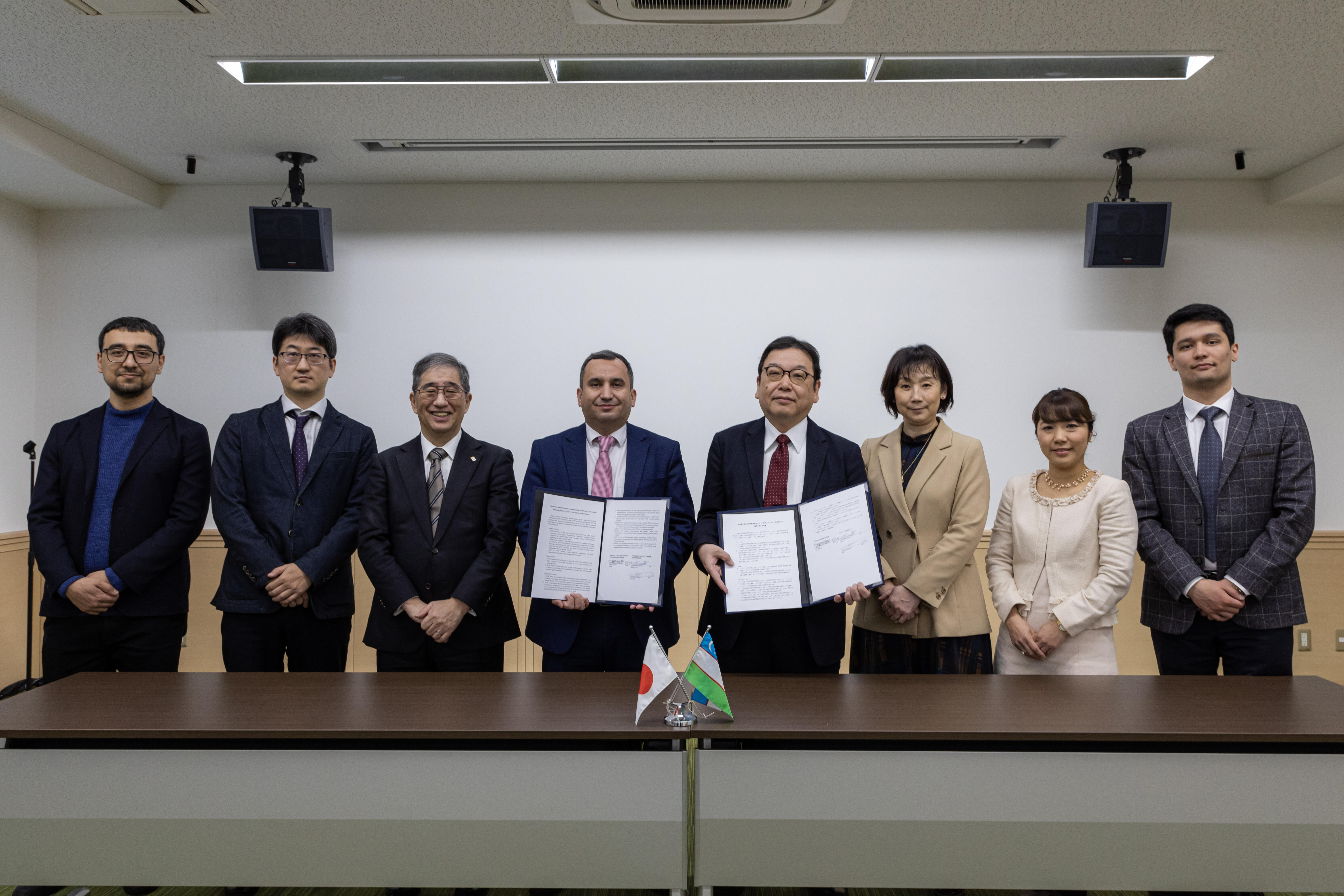 バシロフ副学長ご本人は、名古屋大学法学研究科で博士号を取得されており、英語コース専攻ではあったものの、日本語もかなりのレベルで話す方です。今回、当初はウズベキスタンの司法副大臣が一緒にいらっしゃる、ということだったのですが、来日が遅れ残念ながら名古屋大学には来ていただけませんでした。結局、副学長のみの来学であったので、当初用意してあったフォーマルなご挨拶ではなく、もっと砕けた挨拶の方が良かったかもしれません。調印式も、名古屋大学側が法学研究科長、CALEセンター長がサインをし、私とCJLセンター長が見届け人、ウズベキスタン側はバシロフ副学長のみ、ということでこじんまりとしたものとなりました。先方の学長のサインはすでにしてある状態での調印でした。