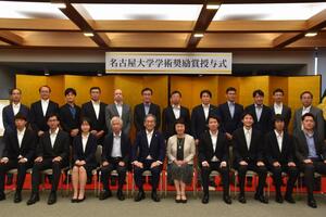 17時からは、学術奨励賞の授賞式でした。学術奨励賞は名古屋大学大学院博士後期課程の学生のうち、「特に優秀,かつ,将来の有望な学生」を奨励することを目的として、2011年度から始めたもので、今回で13回目になります。受賞者は今回の8名を加えて、これで101名となりました。名古屋大学の誇る最優秀の博士人材です。